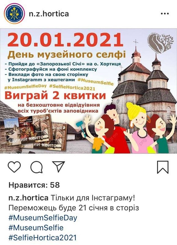 К слову, администрация заповедника и комплекса "Запорожская Сечь" приглашают всех желающих на праздник. Предлагется сделать селфи на фоне историко-культурного комплекса. Также нужно будет опубликовать фото в соцсети с хэштегами #MuseumSelfieDay, #MuseumSelfie, #SelfieHortica2021.