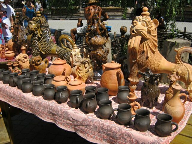 Что касательно самих произведений гончарного мастерства, цены гостей не пугают. 200-граммовая чашка обойдется посетителю в 20-30 грн. Среднего размера кувшин, который не стыдно и подарить кому-то, будет стоить 250-300 грн. Также гончары предлагают массу сувениров, украшений и предметов кухонного быта.
