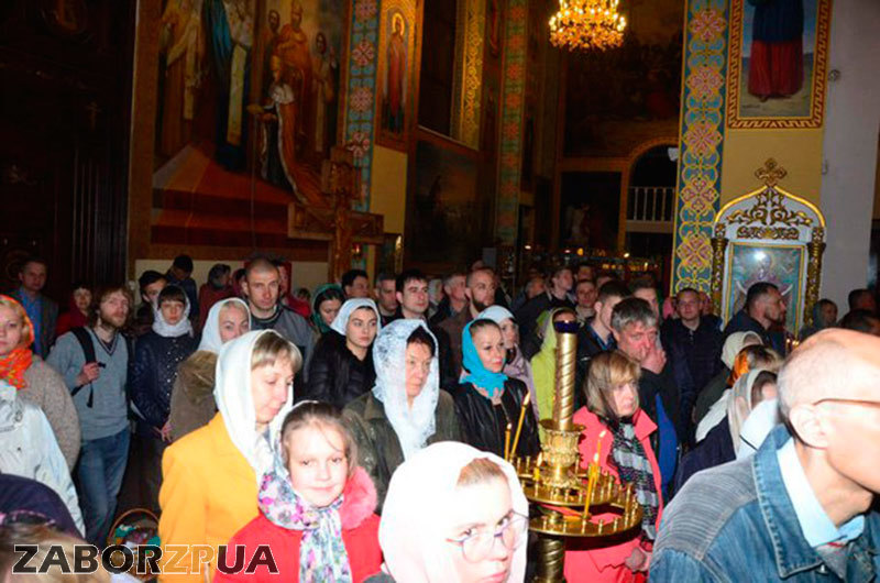 В ночь с 30 апреля на 1 мая в Запорожье проходило Пасхальное богослужение. В Свято-Покровском соборе собралось несколько сотен горожан. Об этом сообщает корреспондент сайта "ZаБор".
