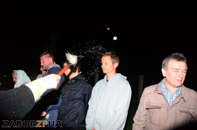 В эту ночь архиепископ Запорожский и Мелитопольский владыка Лука привез благодатный огонь из Иерусалима.