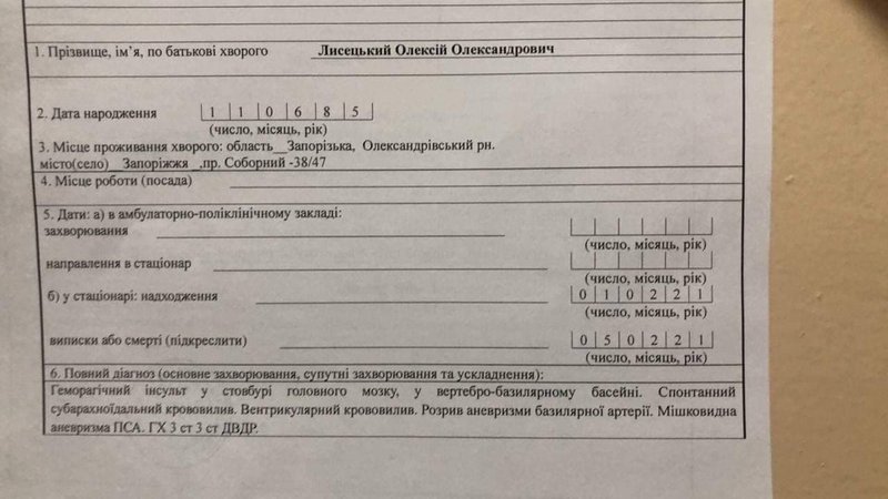 1 февраля в семье запорожского детского кардиолога и педиатра Елены Лисецкой произошла трагедия. У ее мужа – 35-летнего Алексея спонтанно разорвался сосуд в головном мозге, вследствие чего образовалось кровоизлияние под оболочки головного мозга.