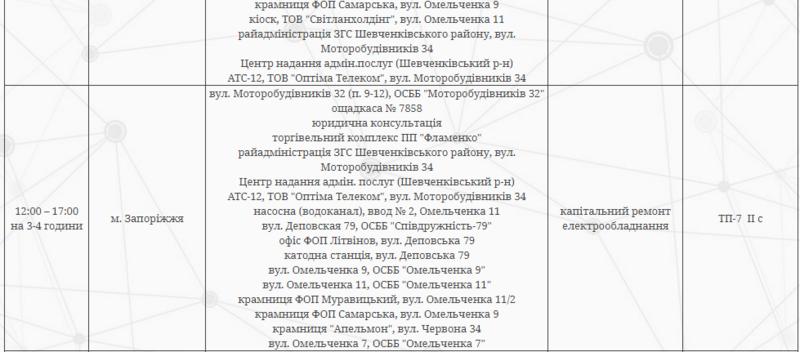 9, 10 и 11 марта тысячи запорожцев останутся без света. Больше всего домов отключат в Шевченковском районе и на Правом берегу Запорожья, передает "ZаБор".
