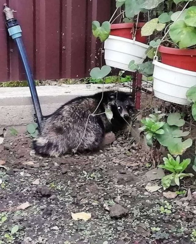 Откуда в частном дворе мог взяться енот, запорожцы не знают. Однако по одной из версий людей, он мог сбежать с Детской железной дороги.