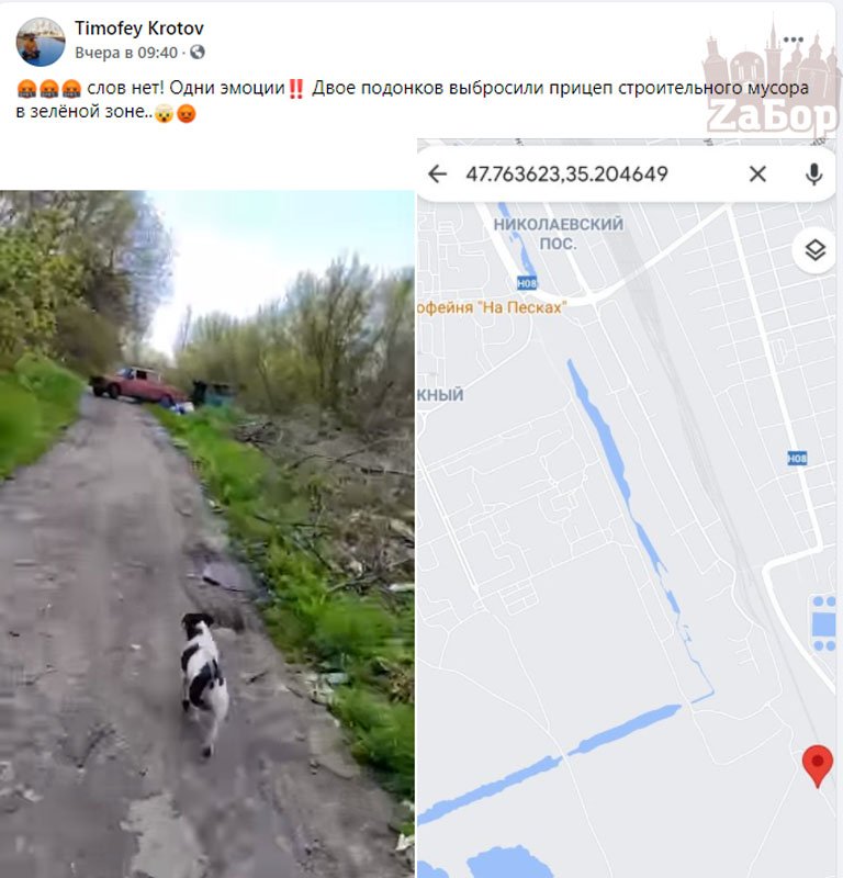 Инцидент произошел вчера. Так, в Коммунарском районе Запорожья двое мужчин выбросили строительный мусор прямо в зеленой зоне за жилыми постройками на Песках, сообщает "ZаБор".