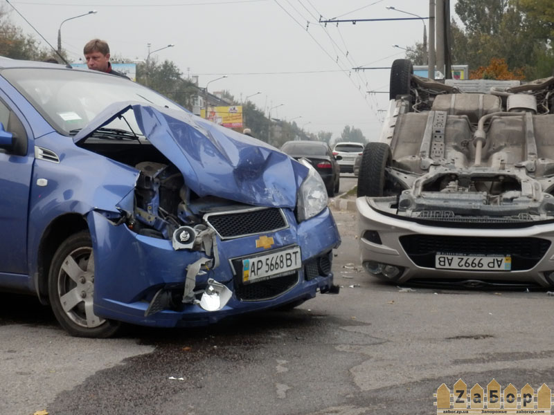 В Запорожье в тройном ДТП перевернулась легковушка