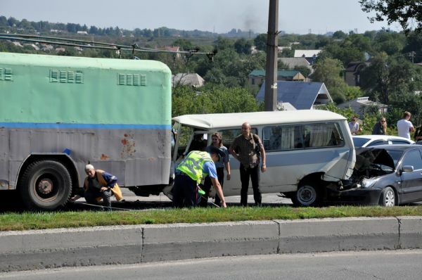 В технический троллейбус врезалась ГАЗель, следом в нее влетела легковушка, которая двигалась. Микроавтобус в результате столкновения был сильно поврежден, как и легковой автомобиль. К счастью, в аварии люди не пострадали.