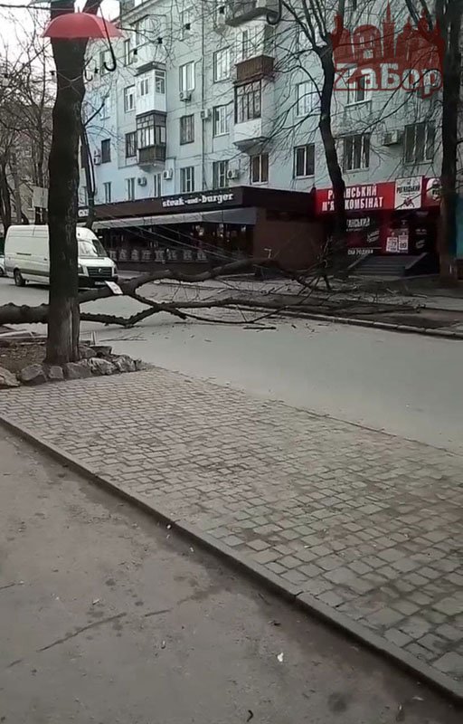 В Запорожье в центре города упало дерево, зацепило провода и перекрыло дорогу (видео)