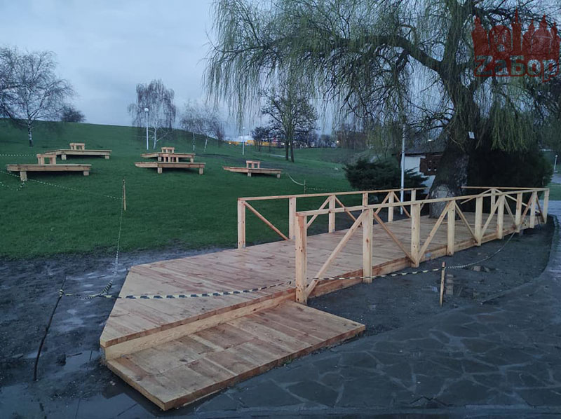 В Запорожье в Вознесеновском парке на склоне устанавливают помосты
