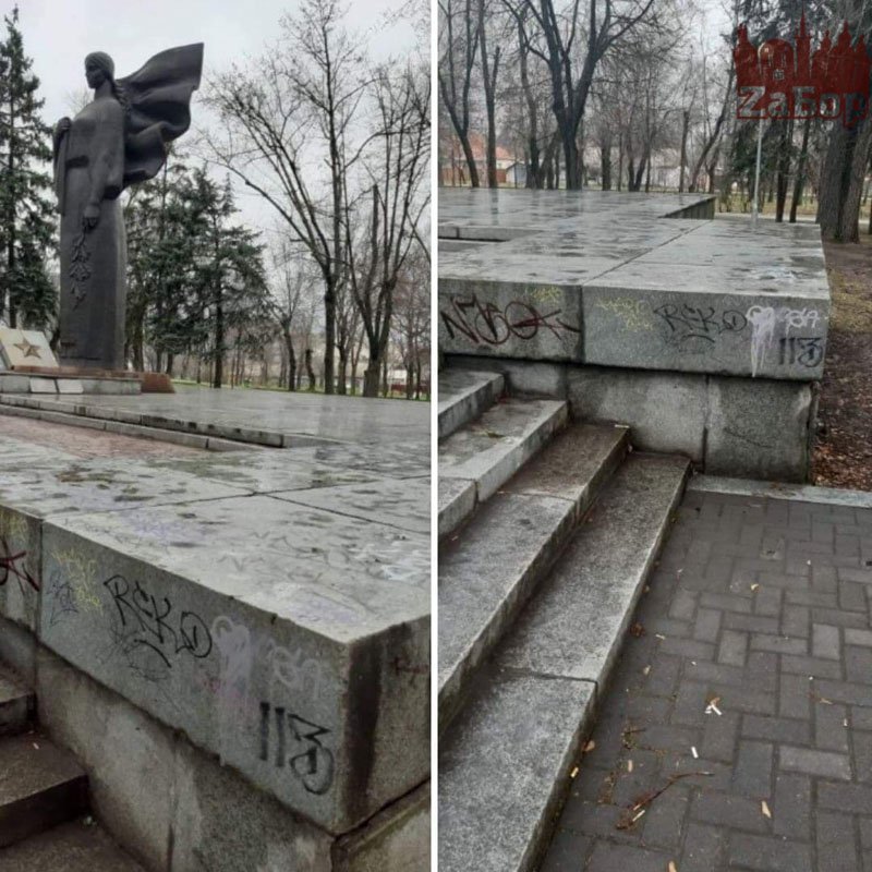 В Днепровском районе Запорожья неизвестные вандалы повредили памятник "Скорбящая мать". На гранитных плитах мемориала появились граффити. Сейчас же, их уже закрасили, передает "ZаБор".