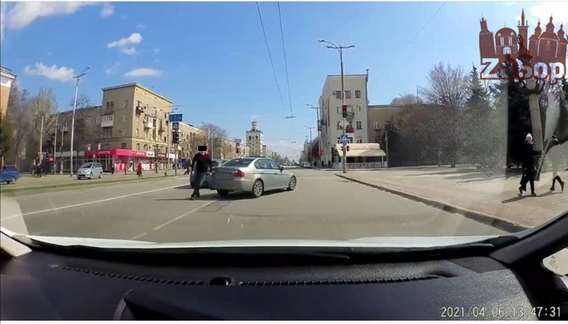 В Запорожье водители устроили разборки на проспекте, в результате один сбил другого