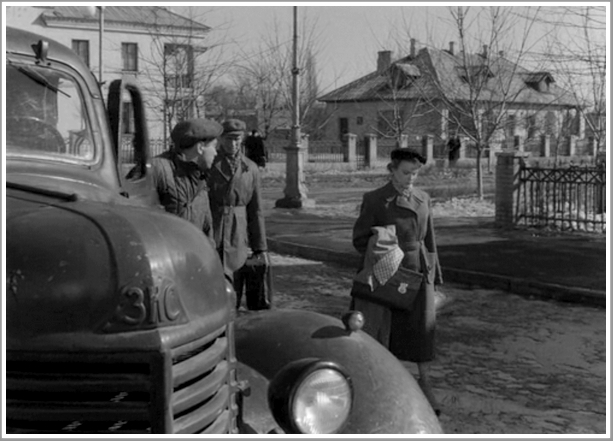 ЗиС появляется в самом начале фильма возле железнодорожного вокзала, куда приезжает учительница, дальше она вместе с Юрой Журченко поехали "по поселку", притормозили около пивного киоска и чуть не наехали на сталевара Сашу Савченко, который неожиданно появился на дороге.
