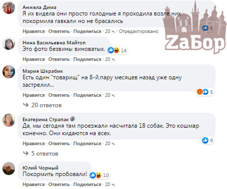 А вот другие пользователи, говорят и о том, что собак нужно просто покормить, и они кидаться на людей перестанут. Так, одна из местных жительниц заявляют, что они просто голодные, когда она проходила мимо, то просто покормила, собаки лаяли, но не бросались.