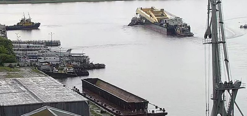 ЧП с краном произошло еще 6 мая, он наткнулся на подводную скалу и пробил дно. 12 мая "Захария" отправили на ремонт в Херсон. А сейчас плавкран возвращается обратно в Запорожье, передает "ZаБор".