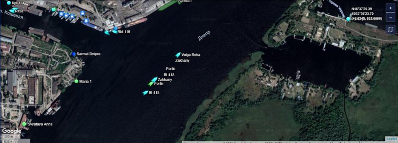 Также увидеть возвращения крана в Запорожье можно и на картах MarineTraffic.