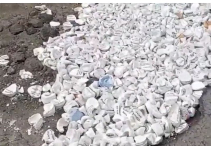 В Запорожье решили необычно отремонтировать одну из ям на дороге. Ее засыпали слепками челюстей, передает "ZаБор".