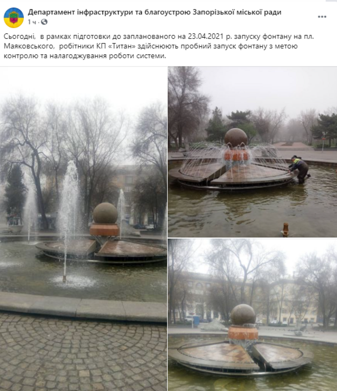 Фонтан на Маяковского должны запустить уже завтра, 23 апреля. Однако заработал фонтан уже сегодня. Так, сотрудники КП "Титан" осуществляют пробный запуск фонтана с целью контроля и настройки работы системы. Об этом сообщи на странице в социальной сети Департамента инфраструктуры и благоустройства Запорожского горсовета.