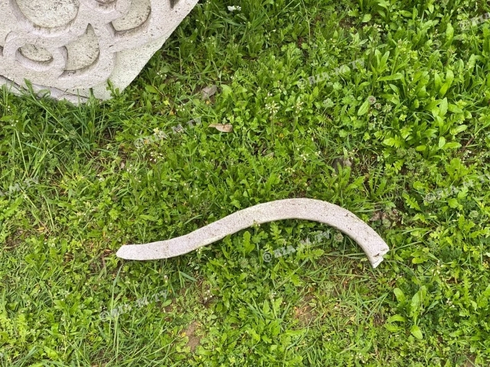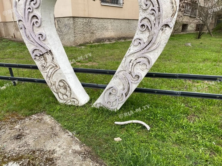 К слову, за несколько дней вандалы уже успели отбить от скульптуры пару бетонных вензелей.