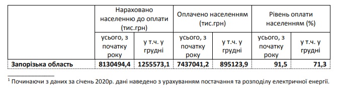 В декабре 2020 года было уплачено 71,3% (895,1 млн.грн) от назначенной суммы в платежках. С начала 2021 года оплачено 91, 5% коммунальных услуг, хотя еще в июле общий показатель был больше 100%.