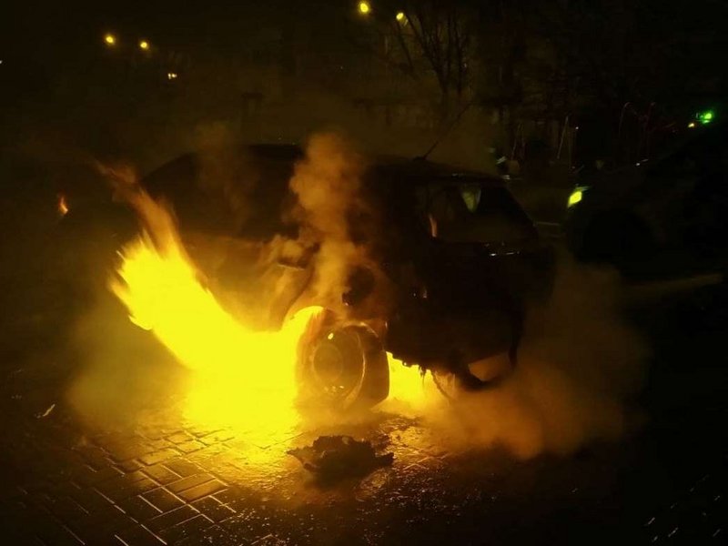 В соцсети появилось видео, как неизвестные поджигали авто сегодня ночью. Так, вначале они его чем-то облили, а после подожгли. Когда, злоумышленники начали убегать, огонь перекинулся на ногу одного из поджигателей.