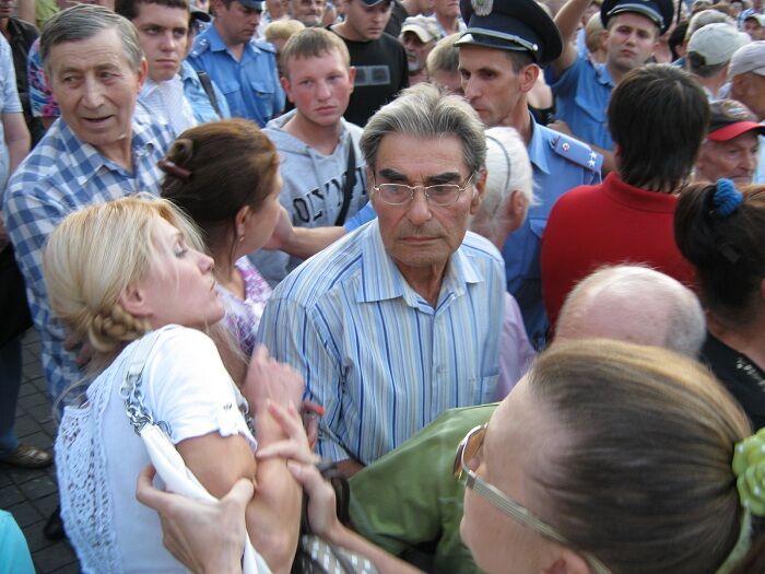 Первой волну негодований открыла возмущенная бабушка, которая без устали кричала о том, как "жирно" живут украинские политики, а конкретно представители собравшейся партии.